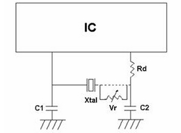根據(jù)頻率,晶體可作為基本或泛音模式.通常,頻率35 MHz以上要求的價格優(yōu)勢和交貨第三泛音模式.在并行模式下,該晶體在電抗電感,兩個外部電容C1和C2是必要的相移振蕩的要求.Cl和C2需要晶體是否是在基本模式或泛音模式.Cl和C2的值由芯片制造商指定的變化從6pF為47pF.Cl和C2可能不平衡,例如,平等的價值,但有時在一個特定的比例失調(diào)(Cl、C2)為了獲得最佳性能,取決于晶體和放大器的特性和電路板布局.(參見圖2)顯示了一個典型的基本操作模式配置.
