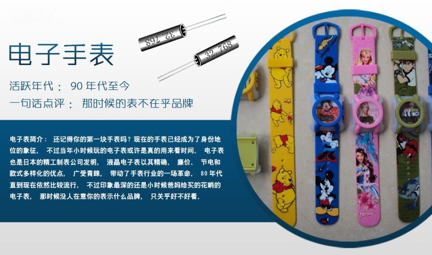 還記得小時候帶的電子手表嗎?電子表對我兒時的印象很深,記得讀小學(xué)三年級的時候班里有個同學(xué)他媽媽給他買了一塊電子表,很漂亮,因為是小孩子嗎?總喜歡拿著別人沒有的東西在別人面炫耀,隨著時間的過去班里有越來越多的同學(xué)都賣了電子表,后來有一天放學(xué)回到家里我就和我媽媽說我要買電子表,班里很多人都買了,可是媽媽沒有答應(yīng),那時候的電子表很便宜幾塊錢就能買到,可媽媽一直沒有跟我買,直到我讀四年級了那天我過生日,媽媽送給我一塊電子表當生禮物,當時特別高興,那是我擁有的第一塊電子手表??墒菦]有帶多久有一次和同學(xué)玩耍時不小心把表給弄壞了,不動了,拿回家爸爸把表拆開來看能不能修好,當時我看到里面有很多奇奇怪怪的東西,也不知道是什么,可有一顆小東西到今天我接觸了這個行業(yè)才知道,原來它叫做晶振元件,是給電子表提供時間顯示的一顆電子元件。電子表最早由日本精工制表公司發(fā)明,而精工早期是做手表的,慢慢得也開始生產(chǎn)晶振,才會有今天的精工晶振品牌。
