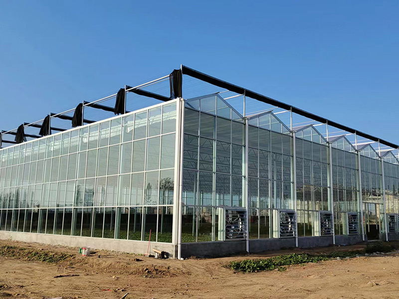 1、該類溫室采用熱鍍鋅鋼制骨架,覆蓋材料為國標5mm厚浮法玻璃,其透光率>90%。