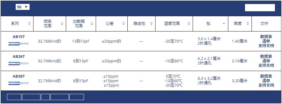 ABRACON晶振32.768KHz插件型號(hào)代碼表: