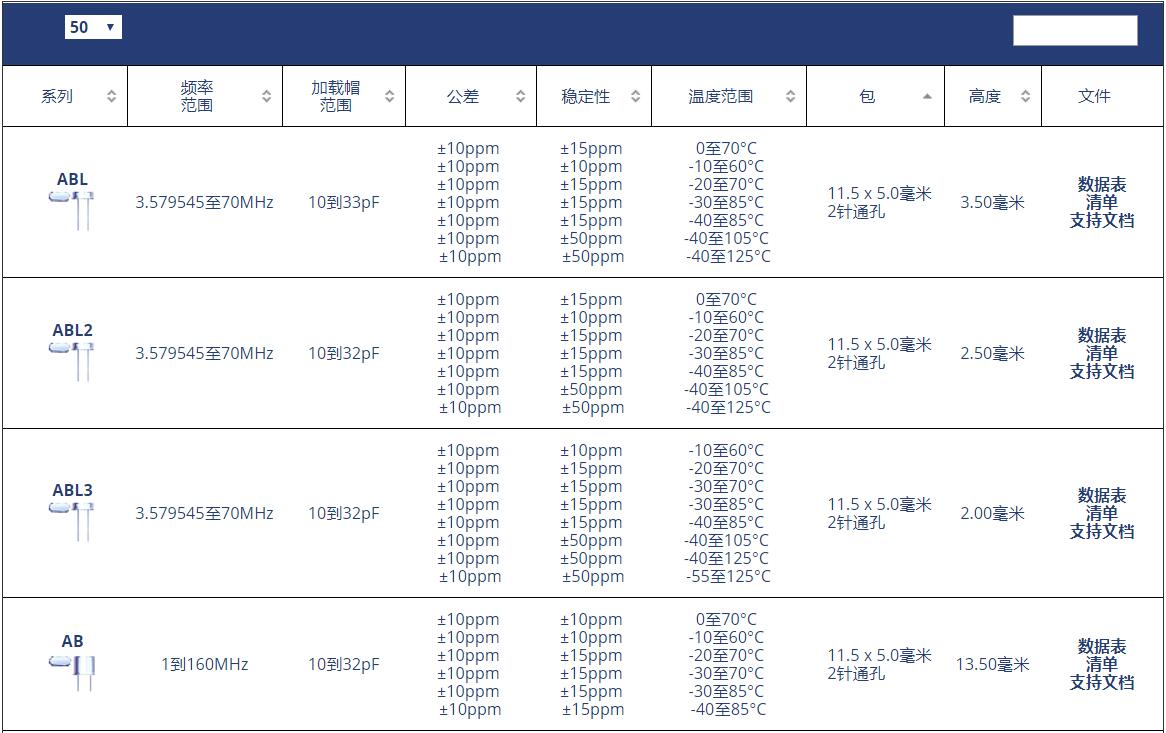 ABL晶振系列原廠代碼表: