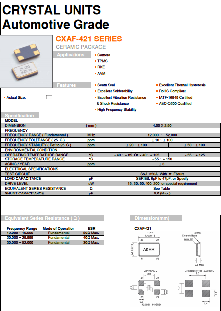 AKER晶振,CXA-028224-4X6D00晶振,CXAF-421晶體,安碁科技亦不斷提升技術(shù)服務(wù).透過與客戶緊密的互動,了解客戶需求,提供客戶全方位的技術(shù)支援─TotalSolution;貫徹安碁誠信為首、專業(yè)化客戶服務(wù)及品質(zhì)優(yōu)先的理念.公司愿景-追求卓越,不斷創(chuàng)新,與客戶一同成長,成為客戶在頻率控制元件領(lǐng)域的最佳伙伴.主要從事晶振元件產(chǎn)品的研發(fā)、制造及銷售.擁有深厚的研發(fā)技術(shù)底蘊(yùn),為晶體振蕩器之專業(yè)制造公司.