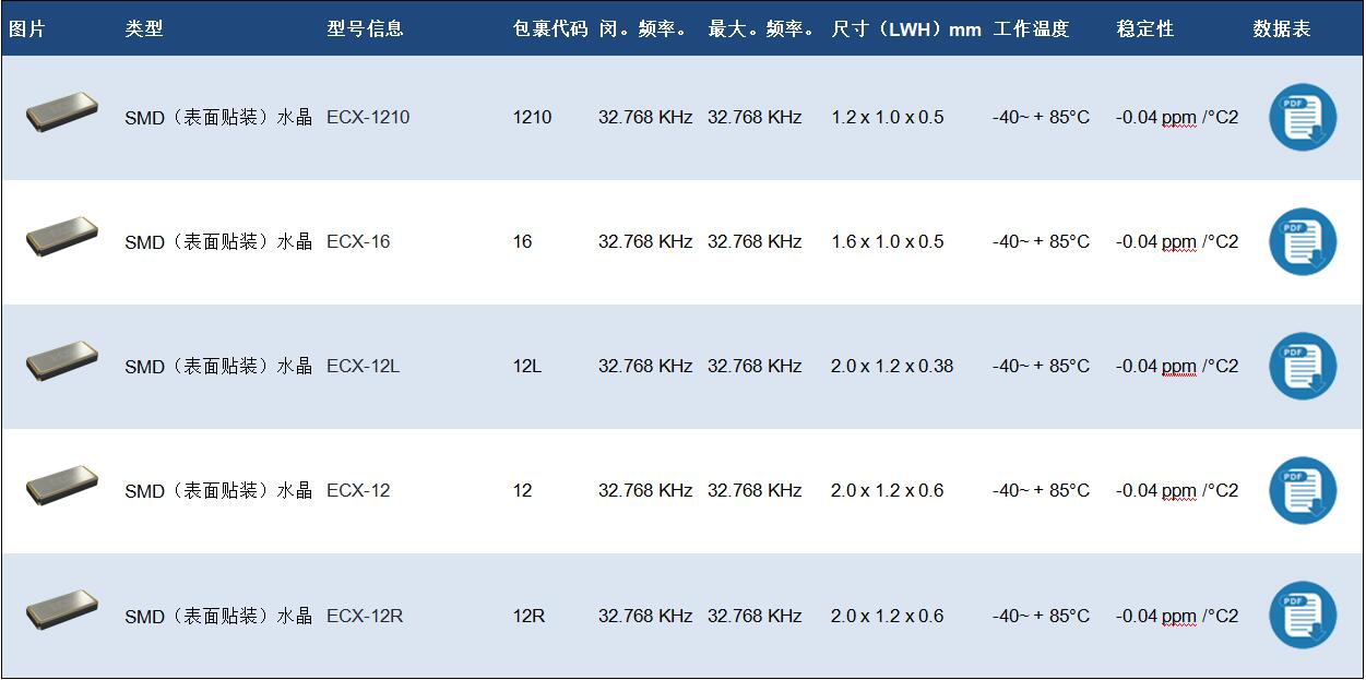 ECS貼片KHZ晶振系列原廠代碼表:
