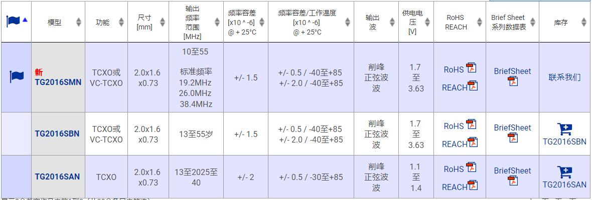 愛(ài)普生TCXO晶振系列型號(hào)表:
