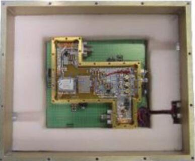 加熱晶體管安裝在1/4英寸厚的鋁制外殼的所有表面上,以實現(xiàn)均勻的熱量分布,傳感熱敏電阻位于前連接器板和內(nèi)部安裝板的連接處,以引導(dǎo)內(nèi)部板的溫度.在內(nèi)部板的底部,整個烤箱結(jié)構(gòu)都被泡沫絕緣材料所包圍,內(nèi)部板的兩側(cè)都有用于所有參考支腳組件的空間,包括功率分配器,混合器和倍增器.初始測試配置,包括溫度室.
