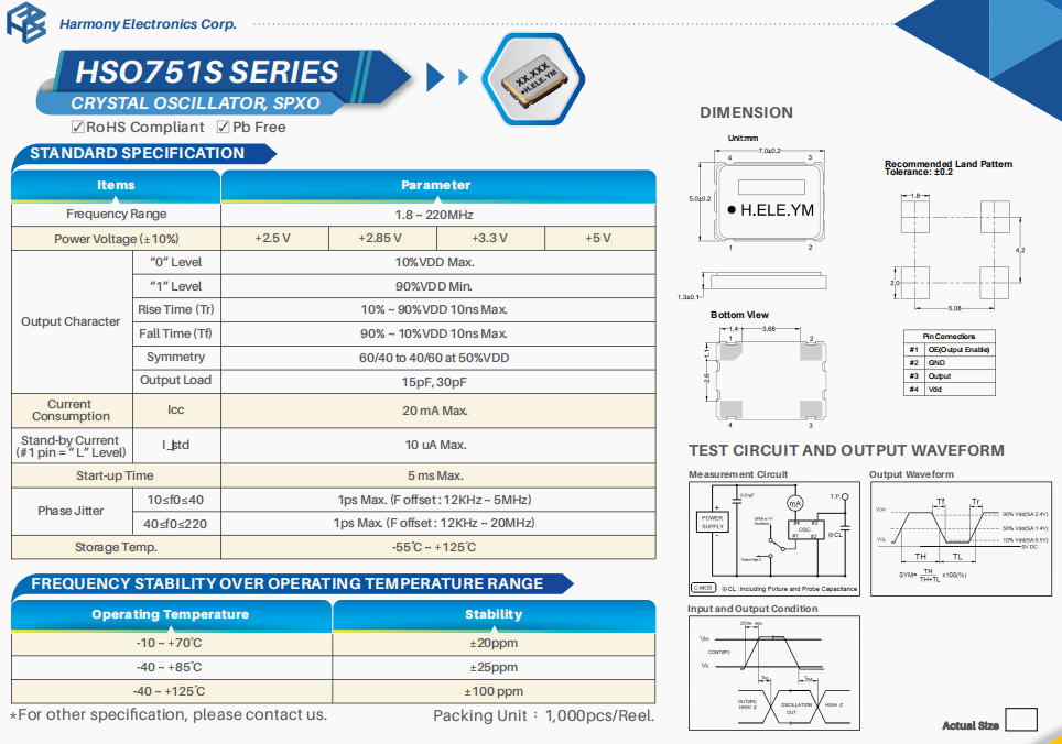 SSR020000K3CHE-T晶振,HELE高精度有源晶體,航空航天晶振,特點:微型超薄SMD產(chǎn)品尺寸(7.0×5.0×0.55 max)。高精度、可靠性高,耐熱性好的有源晶振。針對射頻應用、無線模塊設備、RFID應用和其他基于消費者的產(chǎn)品的優(yōu)化解決方案。臺灣加高晶振公司,HELE晶振,小尺寸晶振,7050晶振,有源晶振,超小型晶振,低損耗晶振,高品質(zhì)晶振,高精度晶振,程控交換機晶振,無人機晶振,北斗衛(wèi)星定位模塊晶振,高精度晶振,6G室外基站晶振,電腦主板晶振,臺產(chǎn)晶振。